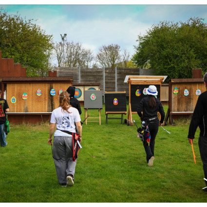 Le week-end dernier, nos archers ont célébré Pâques avec une animation spéciale. Au programme ; une chasse aux œufs dans une ambiance décontractée, suivie d'un tir à l'œuf ! Le blason, découpé en trois zones, a mis à l'épreuve la précision...